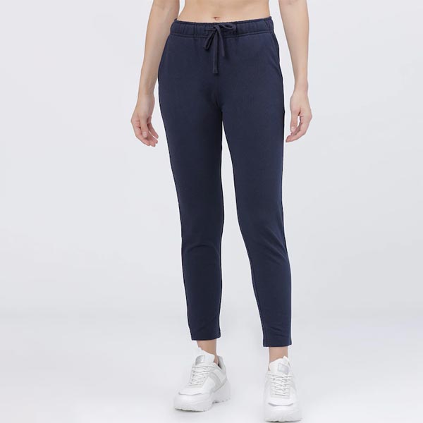 Women Navy Blue Solid Casual Slim Fit Track Pants